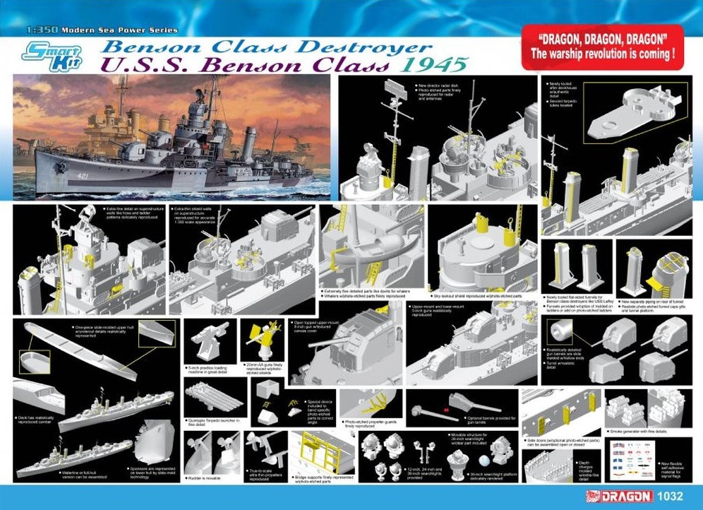 USN “United States Navy” Fore River Shipyard DD-421 USS Benson Destroyer ship – “Benson class” - Dragon Smart Kit